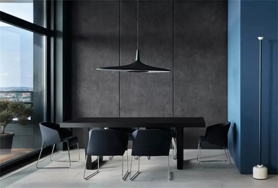 灰与蓝相映结合典型的工业风搭配则施予环境简约利落的商务气质。开阔明亮的视野便于色彩之间的流通,新型材质迎合现代风尚的审美观,赋予家具线条最直接的艺术表达。皮革与织物交界演绎一点变化,金银两色分别带来或奢或雅的情调。